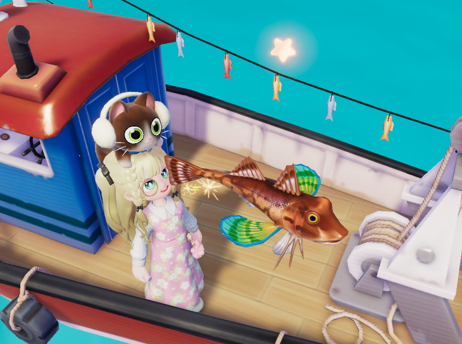 その後ヴァンニア主催の釣りイベにいって、虹の花束もらったので、効果きれるまでフル稼働しましたがタコ星5釣れませんでした。きびしー!
