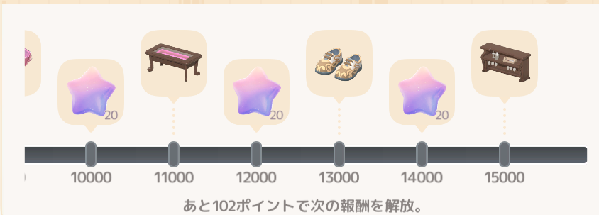 15000までどうやっていくんだろw 願い星がちまちまもらえるので、評価アップはしていきたいですね。