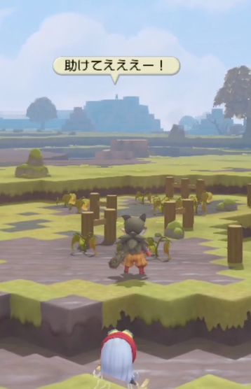 遠くから叫び声がするので向かいます。急げーとはならず、道中の石や木材を集めながらいきます。