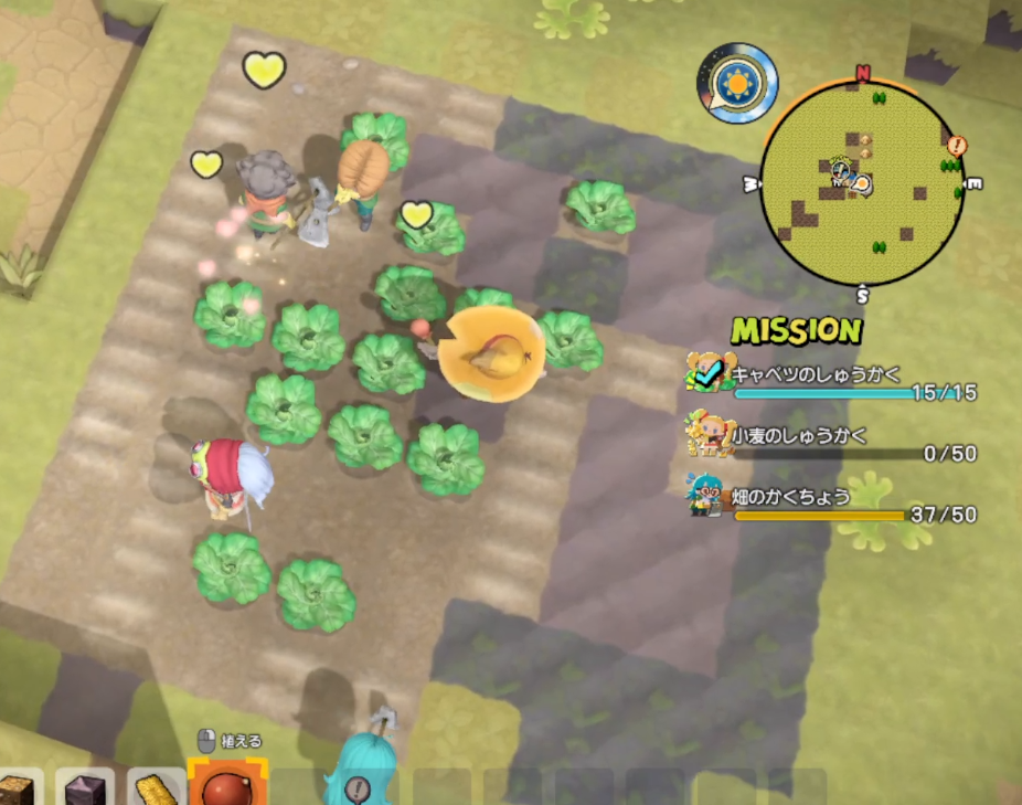 整地してる間にミッションの1つ キャベツのしゅうかくを達成!