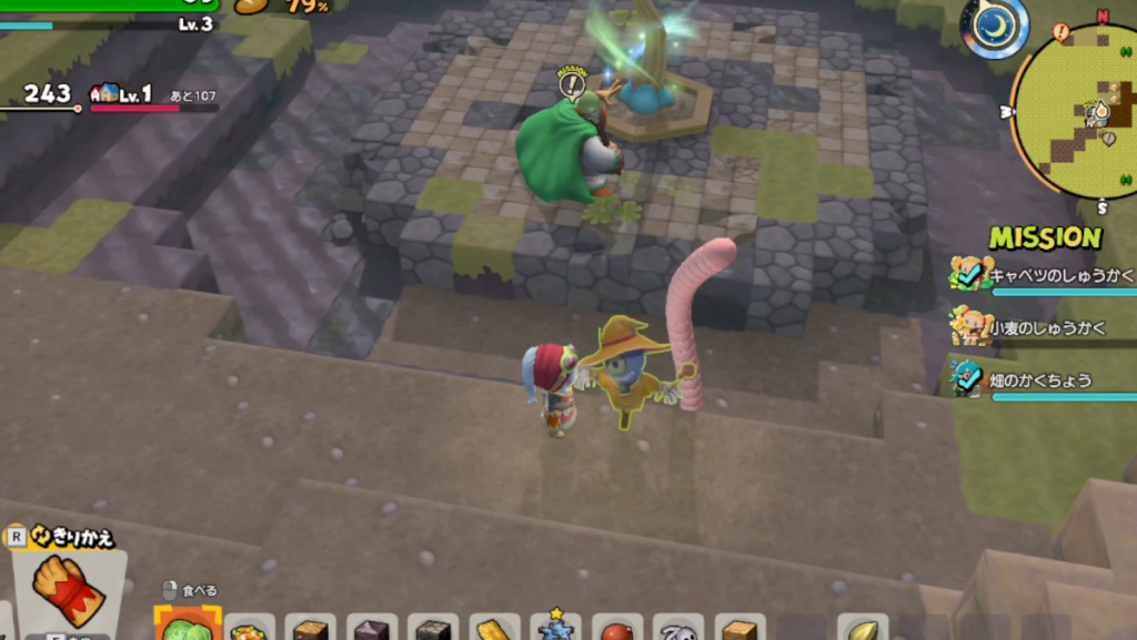 このみみずん、指定した場所の地面をキレイな土にしてくれます。(岩や木材系統は不可) 今回は、かかしの範囲内の土をキレイにしてくれました。全NPCの中でも随一のお役立ちキャラ!
