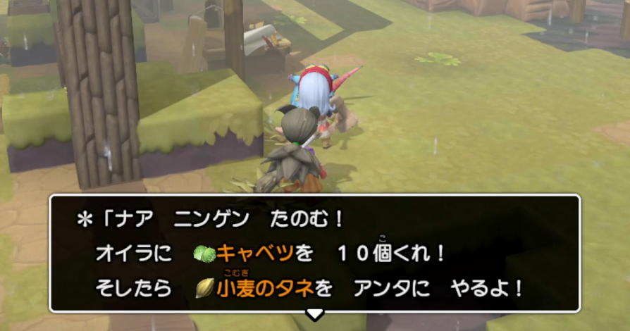 サブクエスト キャベツ10個をあげると小麦のタネ7個をゲット