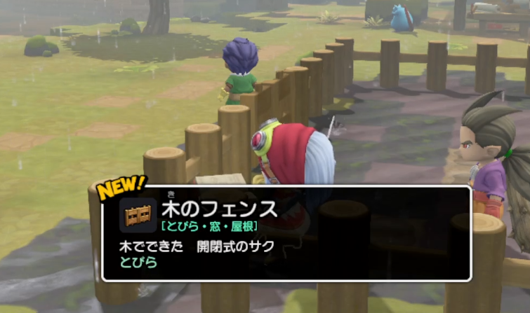 空いてる箇所に木のさくを設置すると、木のフェンスと木のさくをひらめきます。