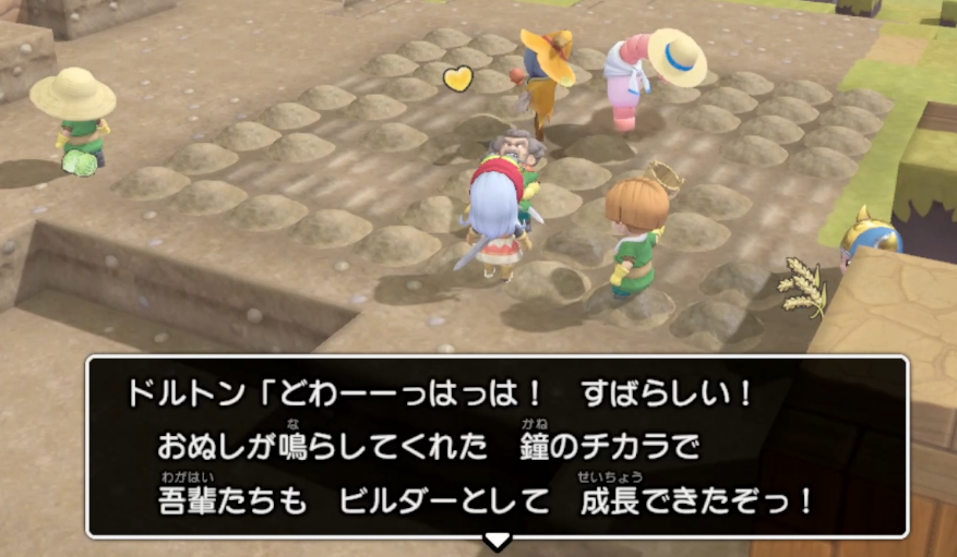 依頼を達成したことで、ヒースもハーゴン教団を抜けてビルダーになり、ついでにキャベツのタネ10個と小麦のタネ10個をくれます。
