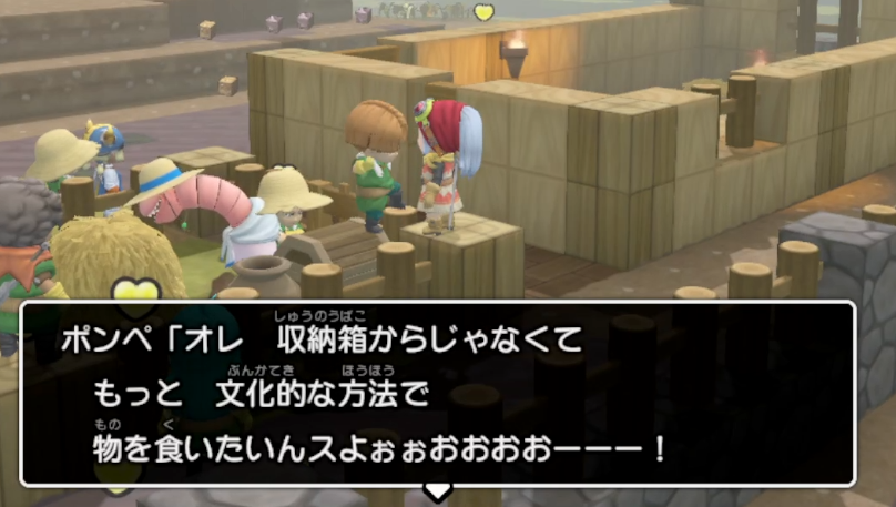 作業中に、ポンペくんがキャベツを食べたいと依頼してきます。収納箱にキャベツを30個いれてほしいとのこと。ちょうど倉庫作りで収納箱があるのでそこに入れてしまいます。