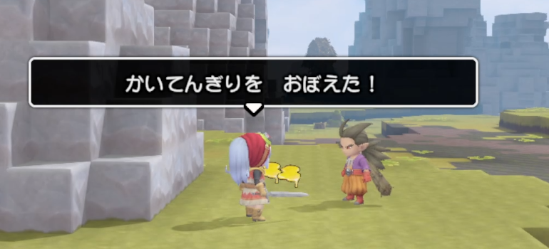素材集めに出かけたらLv4になり、シドーくんから「かいてんぎり」を教わりました。
