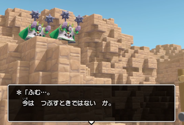 崖の上からこちらを伺うハーゴン教団の姿がちらり。様子見されています