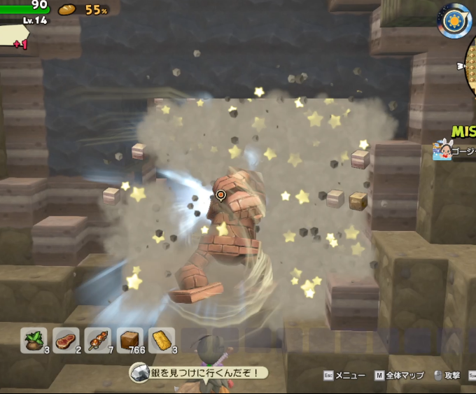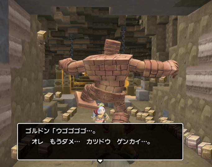 ハンマーで壊せないカベをゴルドンが壊してくれるというので、ゴルドンに乗って移動! 自分で操作できるのでテンション上がります!