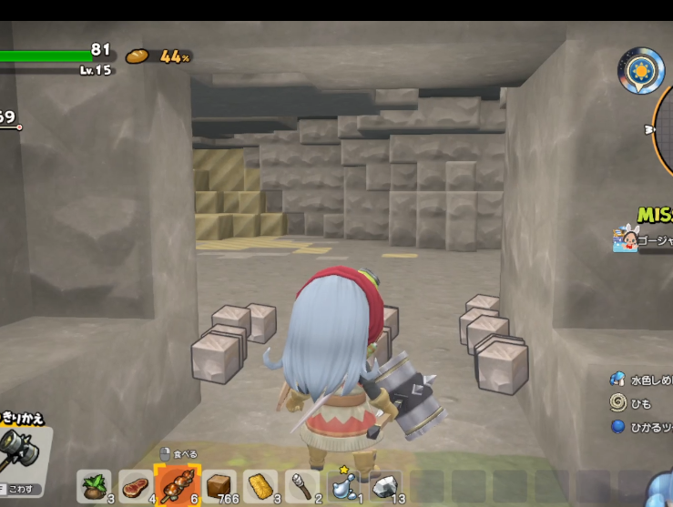 立て続けに覚えます。さくれつハンマーは目の前の縦5x横5x奥行5を一気に壊せます。やっと!