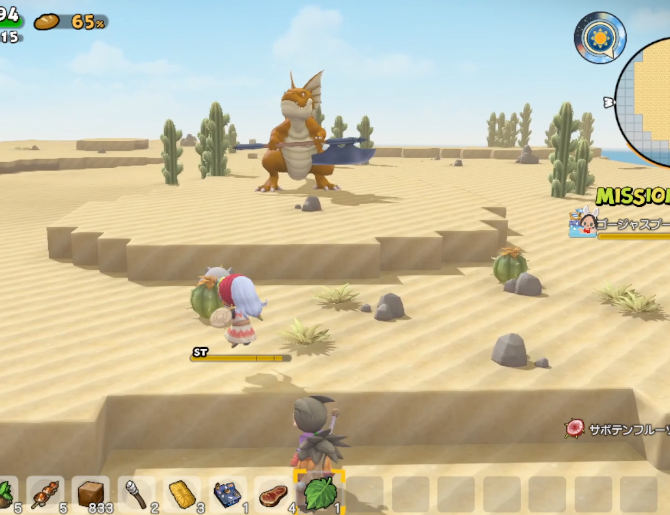 整地にちょっと飽きて、船着き場の対岸にある砂漠地帯へ旅立ち、みちびきのたまを起動