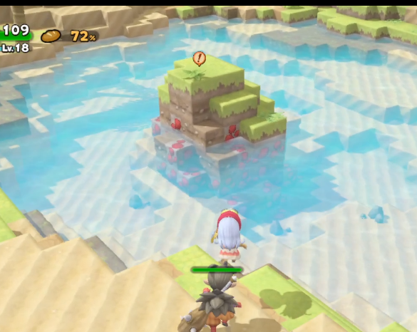今回、色を染めるという概念が追加され、赤い染料をとりにいきますが、途中で寄り道。崖の上にある宝箱にはいのちのきのみがあります。
