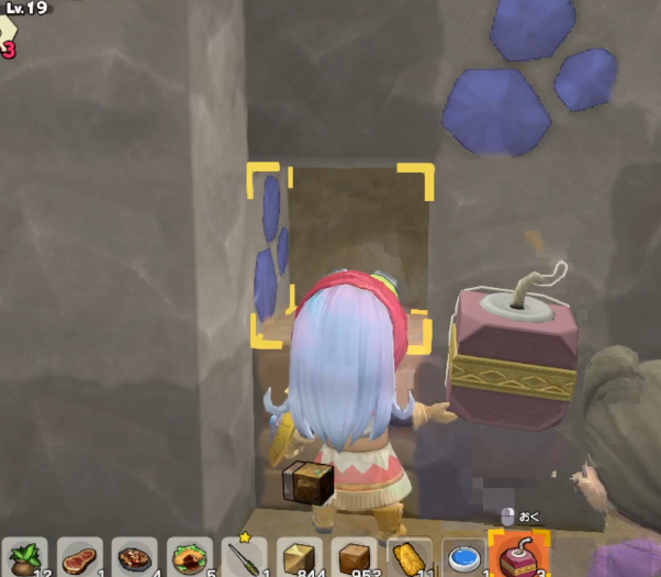 必要となる青の染料をとりに行きます。掘るのが面倒なので、まほうの玉でどかーんと。