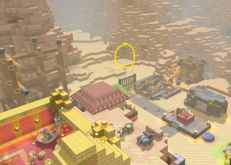 船着き場から対岸のオアシス近くに赤い染料の鉱石があります。みちびきのたまを解放していればワープで、してなければ崖の上から風のマントでひとっとび。