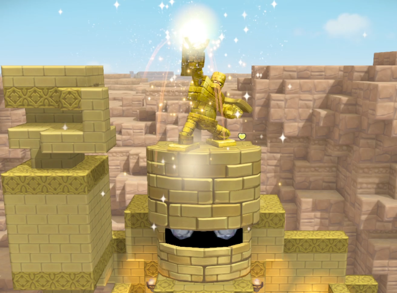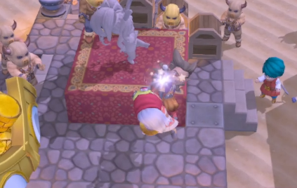 石化させたのはメドーサボール。倒そうにも普段は地下深く隠れていて探せないので、光り輝くものを許せないメドーサボールをおびきだすため、金ピカのバーをつくることに。