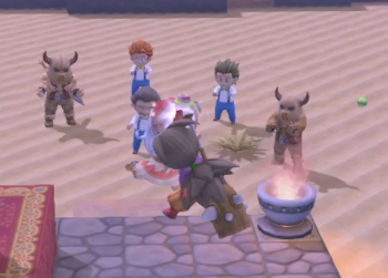 拠点に戻って踊りながら待ってると、怒られるかのようにトンカチで囲まれます。(たまたま)