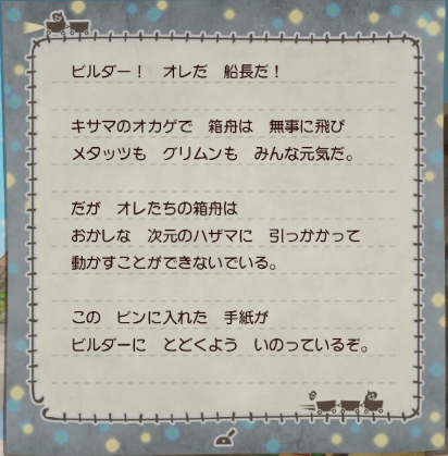 ポストには船長からの手紙が届いていました。いったいどこから誰が届けてくれるのか謎ポスト。
