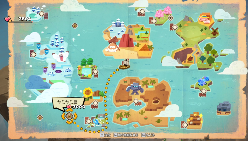 そざい島のヤマヤマ島へ。ここではそざいチェックのコンプリートで、骨と油が無限になります。
