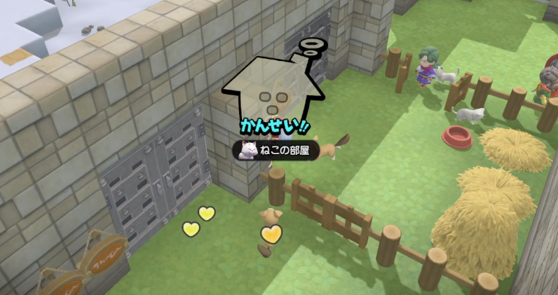 こねこたちが2匹になるよう、おやねこたちに再びあまいちごをあげ、こねこorこいぬが2匹ずつになったら、親世代は他の開拓地か開拓島へ送り、飼育小屋の個室の壁掛けをこねこたちに設定しなおします。