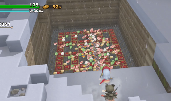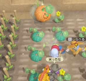 からっぽ島に戻って農業。レア植物の中でも、かぼちゃのレアは4マス使うので、2×2マスに1つのタネを植えることで、稀にできるようになります。ビルダーハンマーで回収すれば飾り的に設置可能。