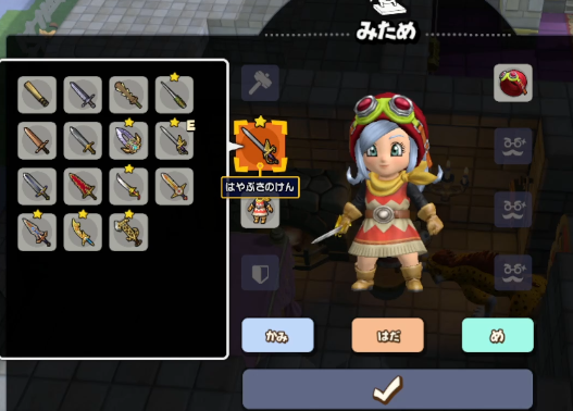 はかいのつるぎを装備して呪われますが、ドレッサーで武器のみためをはやぶさのけんにします。
