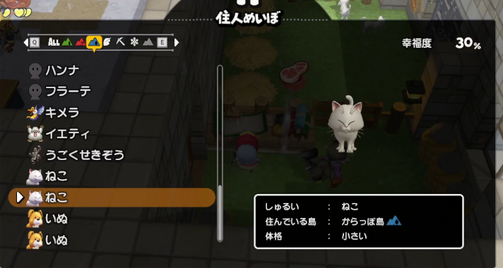 クリア後、住人めいぼで住人が出身地やかいたく島へ移動できるようになります。からっぽ島の住人は60人上限なので、増えた動物やNPCはかいたく島、ストーリー関係のNPCは出身の島へ。