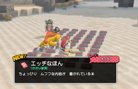 からっぽ島に帰還し、エッチなほんを覚えるために、本を50冊ならべます。