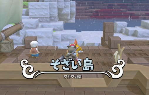 最後のそざい島、マガマガ島に来ました。破壊天体の素材が手に入ります。素材チェックコンプリートで、はかいの砂とシドニウムが無限に。