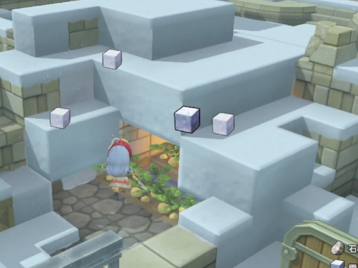 北西部の崖にくと、後ろ向きの女神像の場所に宝箱。小麦の種が5つ。畑を拡張して植えておくと食料源に。