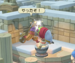 クエストの印のあたりにいくと敵が湧くので 倒して 61回目のハイタッチ! イヤッホー!