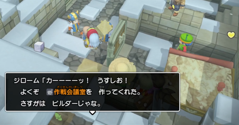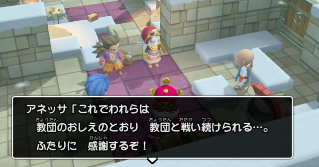 他のキャラはまだハーゴン教の信者のまま、けれど戦い続けるための拠点作りの協力を求められます。
