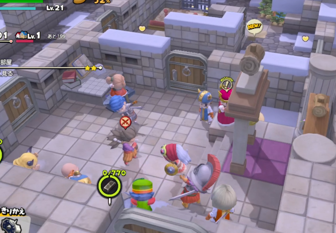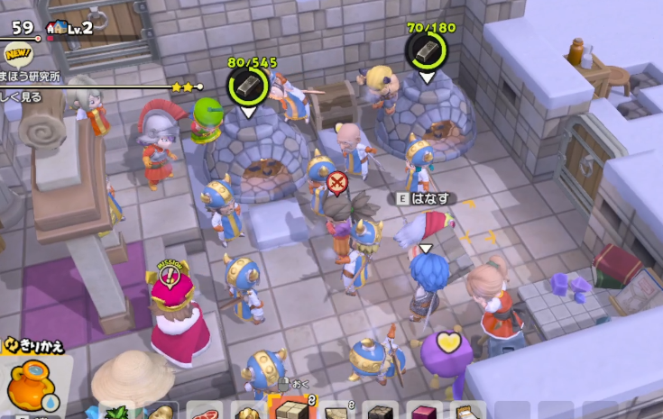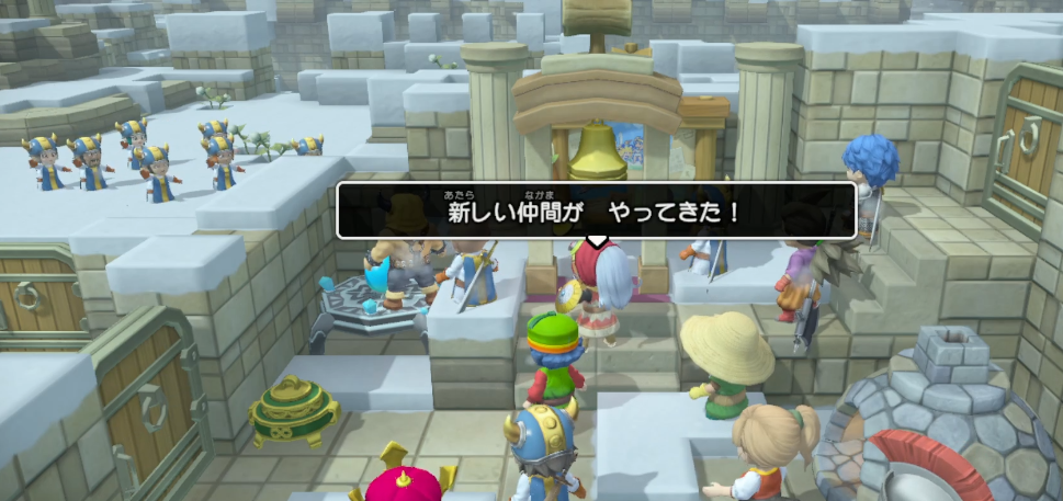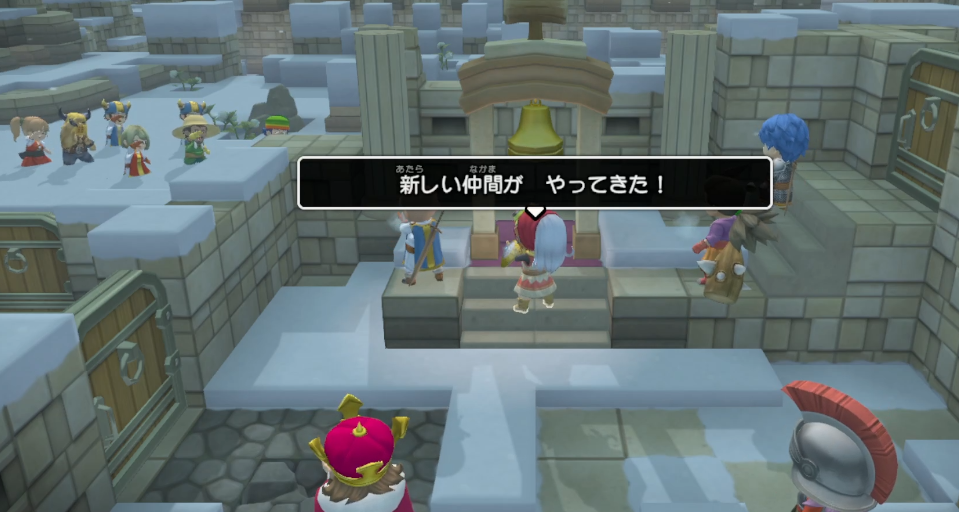 鐘をならしてビルドLv1にすると、いろんな格好をした仲間がやってきます。