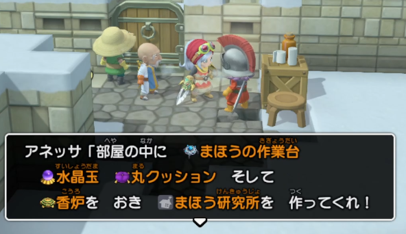 アネッサの依頼でまほう研究所を作ります。まだ覚えていない水晶玉と香炉、丸クッションを覚えます。