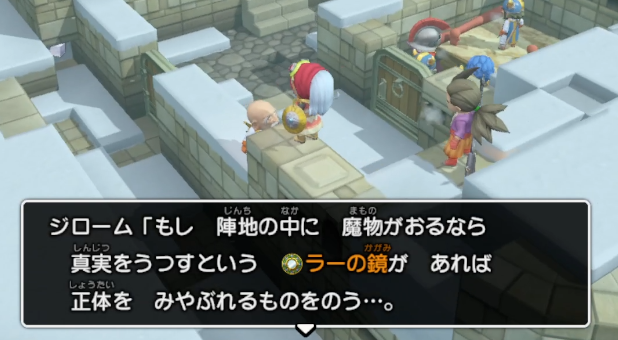 ジロームに依頼のポトフをあげると、話題の流れでラーの鏡について語られます。城内にスパイがいるかもしれない、魔物が化けているかもしれない、という疑心暗鬼が広がっています。
