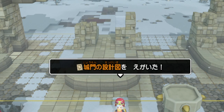 お次は城門作りで設計図。ここからは収納箱に材料をいれれば住人が建築してくれるので、素材集めと依頼に専念します。