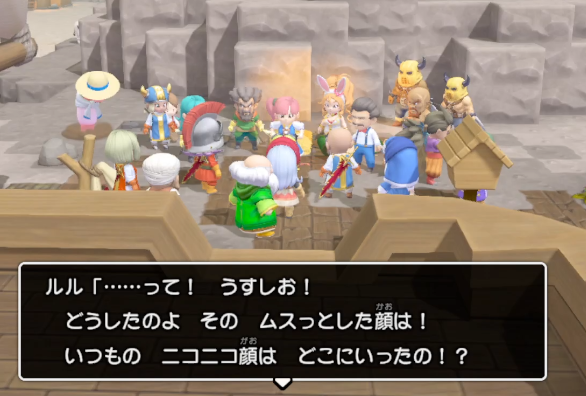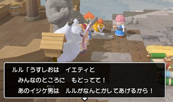 ルルちゃんと仲間たちが出迎えてくれますが、主人公もムスッとしていたようです。
