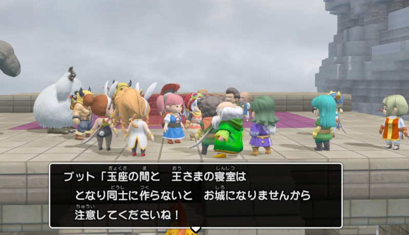 場面が戻ってお城づくりの再開です。玉座の間と王さまの寝室をとなりあわせて作ることで、マップにもお城のマークが記されるようになります。