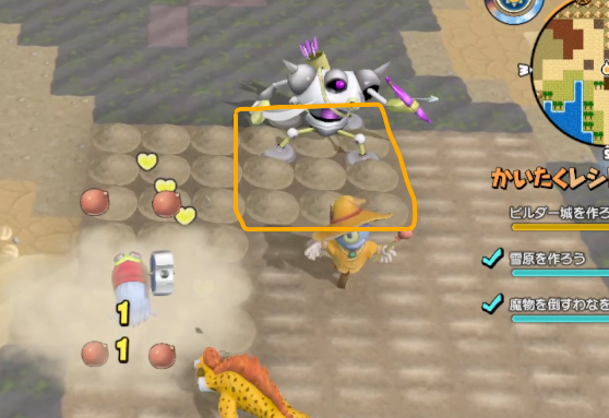 この時点の強敵はちょっとだるいので、ヒャドトラップを3箇所に離して設置し常時こおらせ攻撃! 回収しわすれに注意!(一度島を出ると消えてしまいます)
