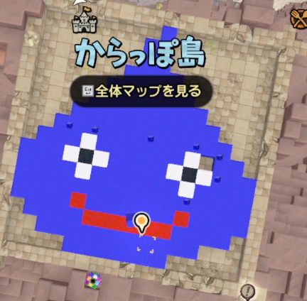 もうひとつ行けるようになっていた、そざい島のチャポチャポ島にきました。ここでは素材チェックで、大理石と土が無限になります。お城の壁が作り放題!