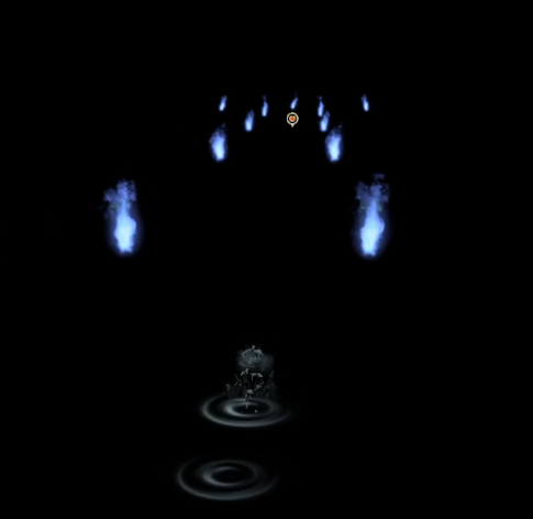 画面が暗転し、青い炎に誘導されて水音のするなかを進むことに。