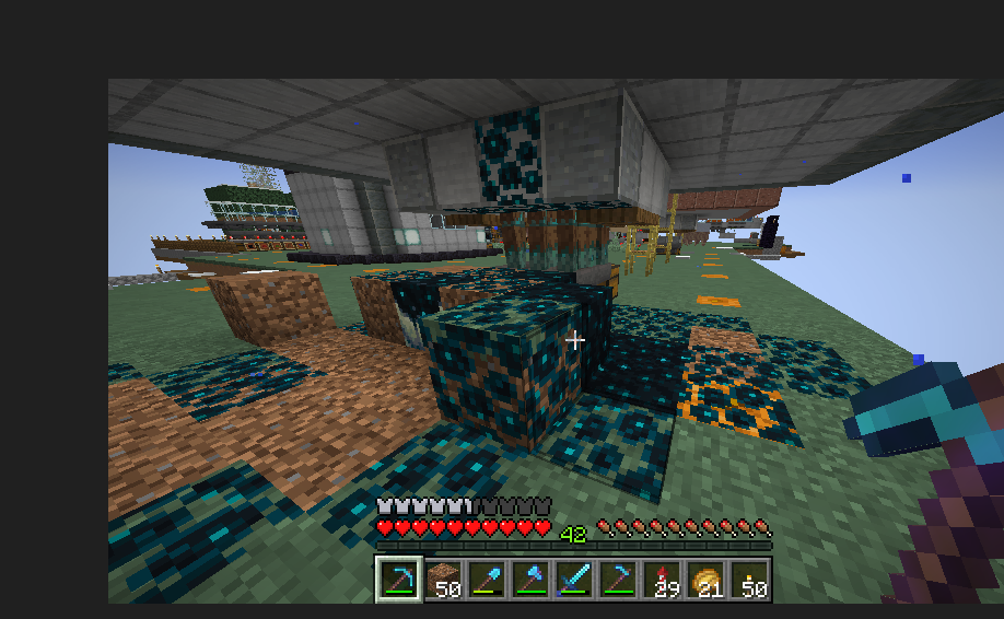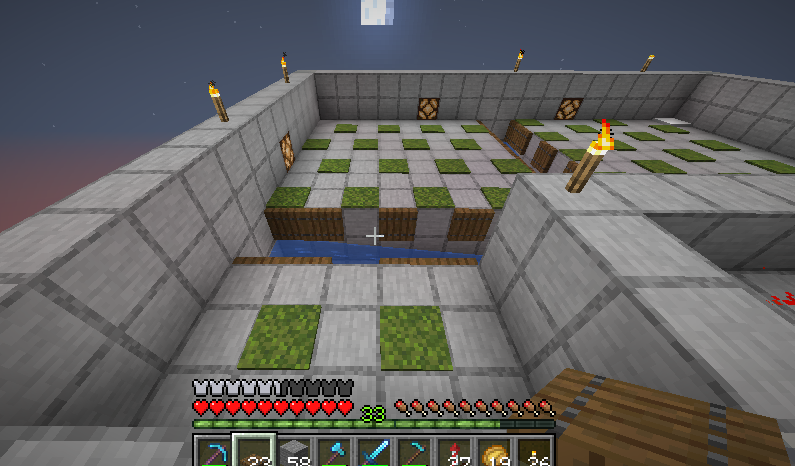 ホッパー回収にしたい意地で、格子状に土を置いてホッパー付きチェストを挿入しました。