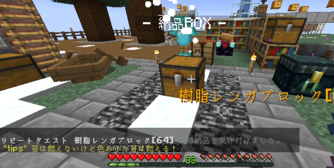 樹脂レンガブロック64個納品、色あせた苔1個もらえました。