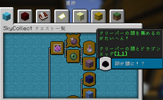 さてさて、納品で見える範囲の残すところが3つほどになりまして。1つは不死のトーテム、もう1つはクリーパーの頭が必要。