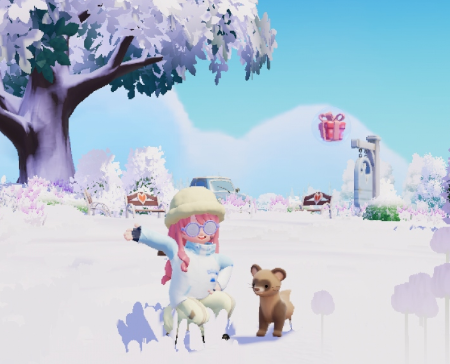 なんとなくテンと写真を撮りたくなって、固定カメラでポーズつけて狙ったところに、ポンッとプレゼントボックスが浮かんできたw くそうw