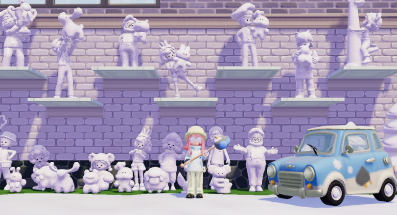 スノーシーズン残り3日、ゲットできた車と衣装で雪像たちと記念撮影。