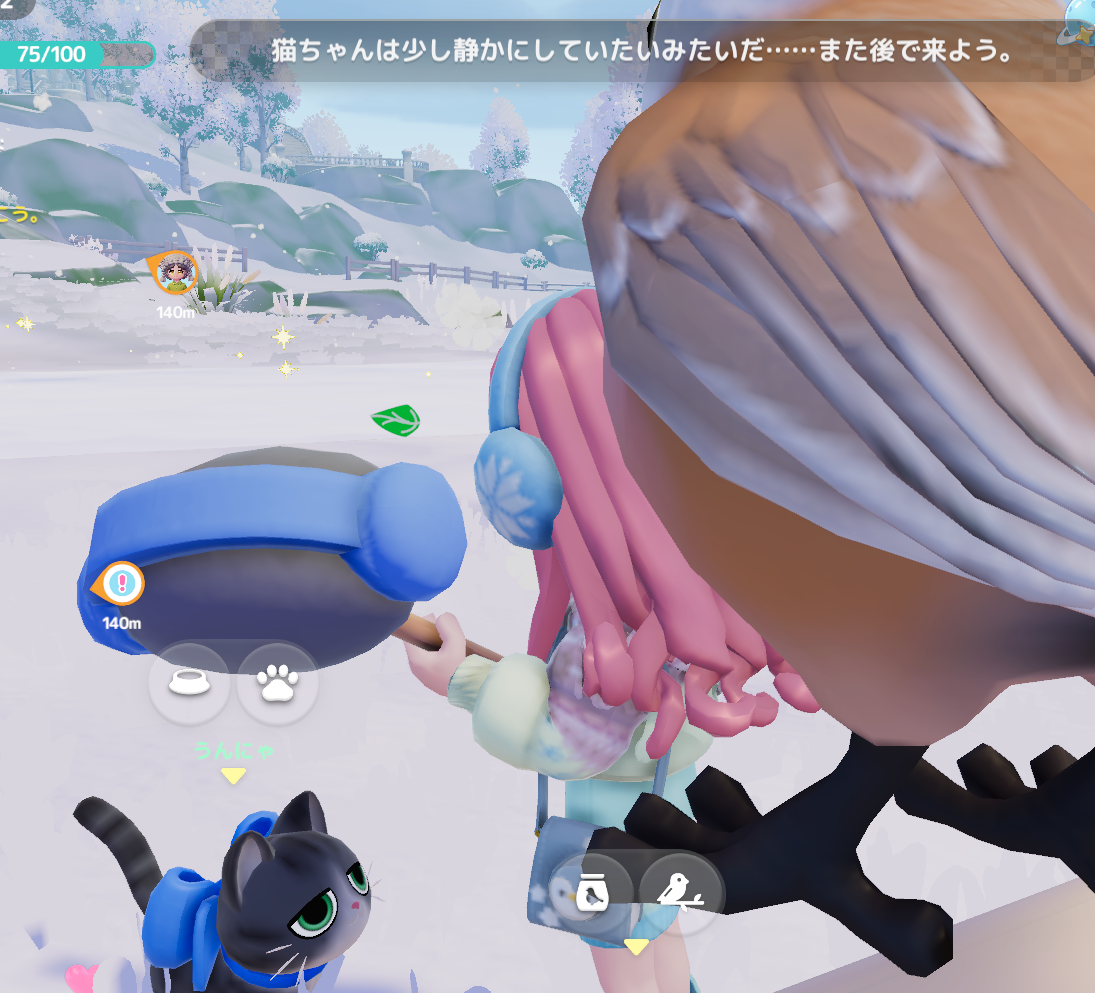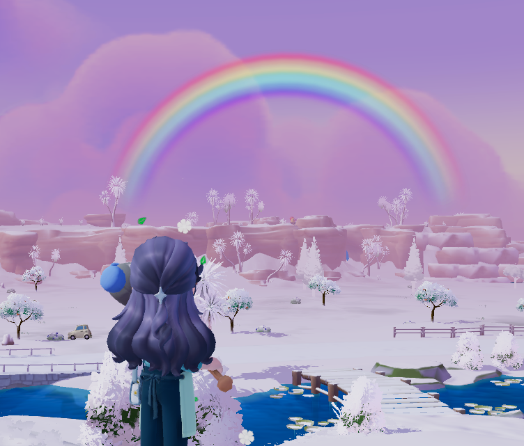 気分転換に釣りに移動します。ばけにゃんが虹の日にしか釣れない魚が好物だと判明。