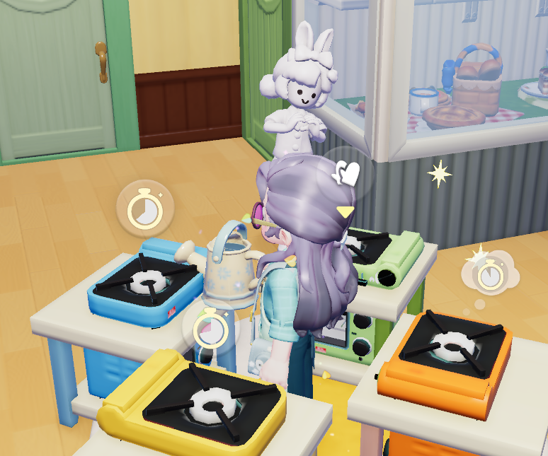 アニーちゃんを励みにお料理頑張ってたら、油断してましたまたやられた!! インタラクトがどうのとテロップは出なかったけどコンロが触れず、急いでコンロ移動試みるも何もできず😢 抜け出せもしないので建築モードにして脱出。虹の花束使ってたにもー!