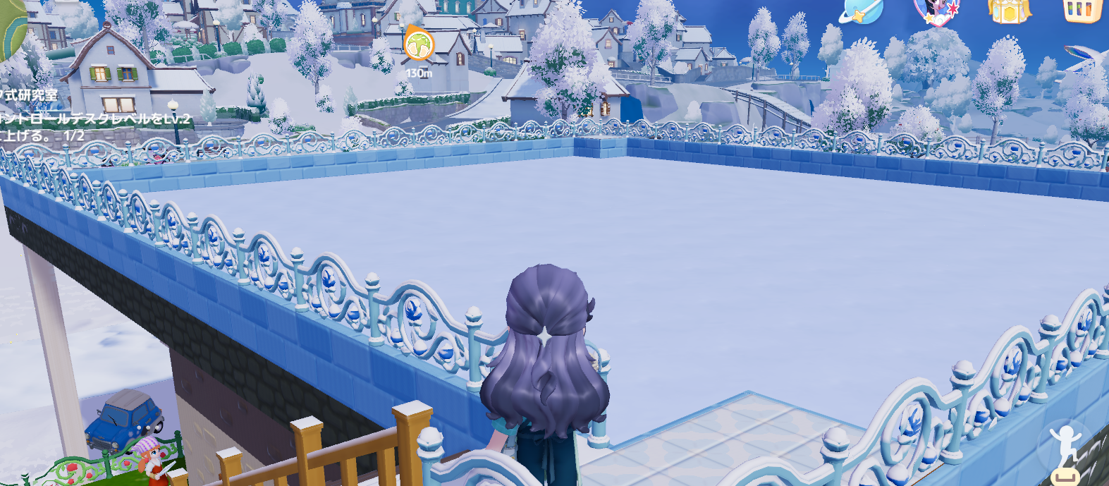 広いスケートリンクがほしい でもマイホームにスペースがない! のでサブ垢ホームに作りました。適当に作るつもりがスケート床は壁に隣接しないとダメとかフェンスは床に接地してる箇所がないとダメとか仕様を知らず、試行錯誤で完成・・。