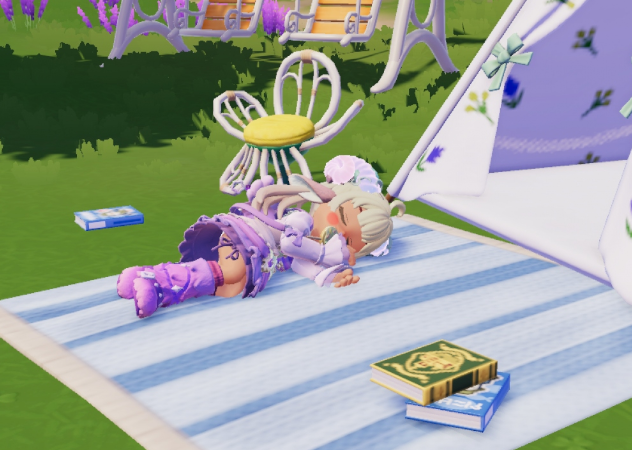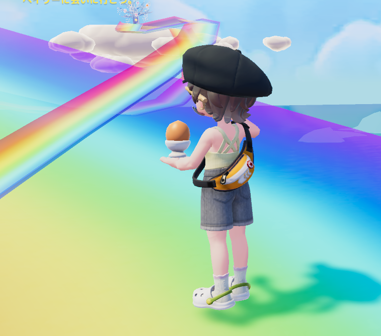 バッジ集まったし行く必要なくなったけど習慣になってるのでイベントツリーへ向かう虹の滑り台(?) 途中で食事すると立ち上がるのを初めて知りましたw エモートもできるw