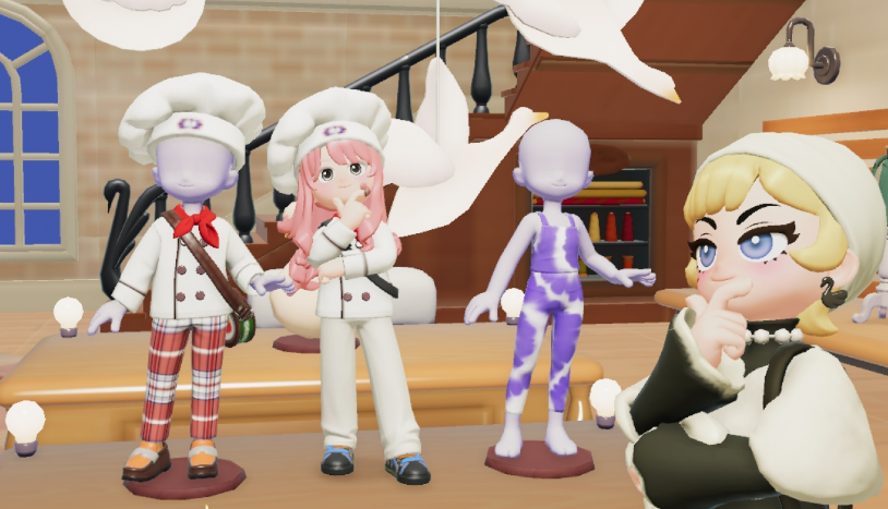 料理帽子に簡易コック服。ズボンはコインで買えるやつです。