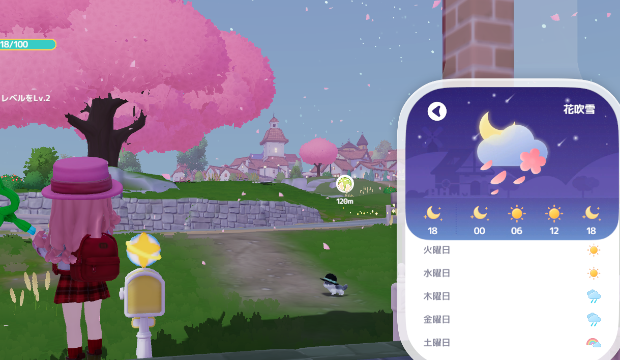 夜になると花吹雪になるようで。きれいではあるんですが、昼からずっと花舞ってて、たぶんエフェクト重いんじゃないかな。PCはログイン時に重くなるだけですが、サブ端末が固まる。